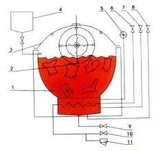 成衣染色机适合小批量、特殊品种的成衣染色,具有灵活、方便、快捷的特点。其原理如下图: