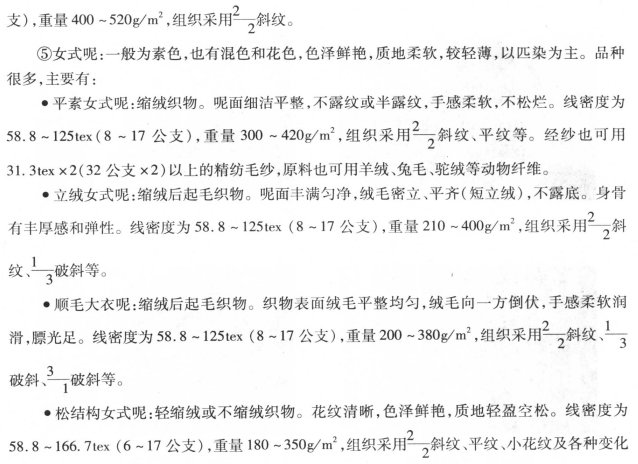 粗纺毛织物的分类方法各有不同,主要有以下几种: