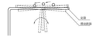 摆动斜鼓式排纱机构获得广泛的应用,艾洛(无锡)纺织机械有限公司生产的Laser/Star型储纬器就属于此种类型。如图10-3所示,它的传动原理类似于上述摆动斜盘式,所不同的是用波形摆动的斜鼓取代了波形摆动的斜盘。摆动斜鼓和储纱鼓做成栅杆状,相互嵌套,栅杆间有较大的间隙。摆动斜鼓向上抬起,从储纱鼓上取出纱圈,向前摆动,使纱圈沿鼓面移动,然后摆动斜鼓低于储纱鼓面向后摆动到起始位置。重复上述动作,纱圈便有规则等间距的形式排列在鼓面上,无重叠和相互缠绕的现象发生,并可连续调整分纱间距。