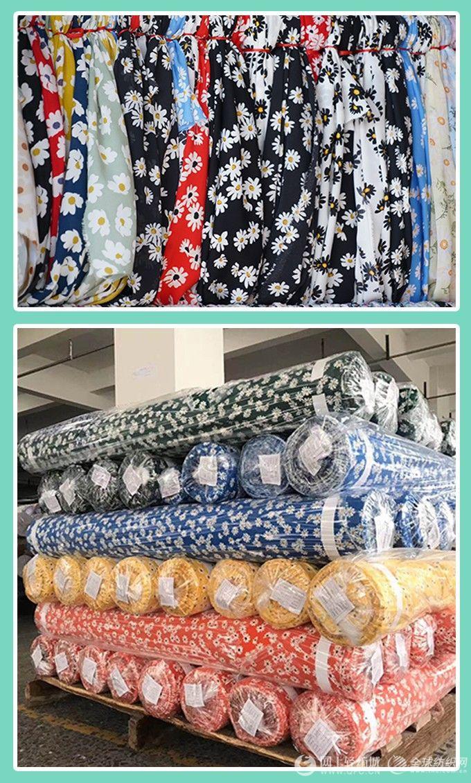 一大早,记者来到全球大的纺织品集散地市场,一眼就看到被摆放在各门市部门口显眼位置的小雏菊面料,除了有经典的黑底白雏菊,还有各种样式、颜色的小雏菊花型。记者在走访中了解到,该花型从去年年底开始订单量急增,年后虽受到疫情影响订单明显萎缩,但小雏菊的返单量依旧可观。“我们是做女装面料的,疫情之后我们接到的订单中小雏菊占了一半,这是我们仓库后一批补单货,今天全部给它发出去。”正在配合发货的张先生说道。