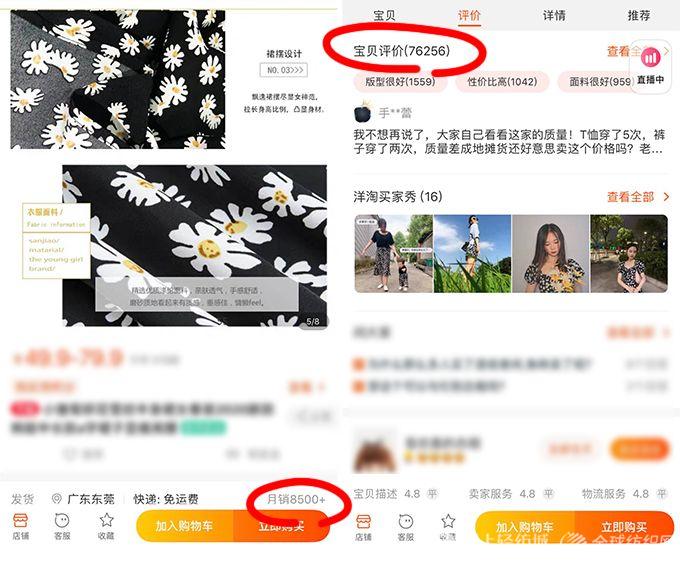 小雏菊真有这么火爆?记者打开淘宝页面搜索“小雏菊连衣裙”,发现月销上千的店铺非常多,有些店铺几个月累计评价高达六七万,已全面“攻占”淘宝,稳坐店铺“C位”。小雏菊的裙装款式和风格整体相差不多,常见的有连衣裙、吊带裙、半身长裙、半身短裙,不同的店铺在长度、腰线、领口处等做不同的设计。