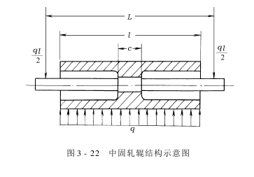 将辊体简化成简支梁,其受力状况如图3-21所示,挠度只是减小,而未消逝。因此,整个纬向的轧液均匀性问题并未解决。但是,假如能使轧辊的中间挠度与两端挠度相等,则可以解决中浅边深的颜色差异。通过计算可知,此时轧辊的挠度已大大减小,其大值仅为一般轧辊的20%,因此,对提高轧液均匀度有肯定的效果。设辊体长度为l,则此时辊体两支点的内移量为: