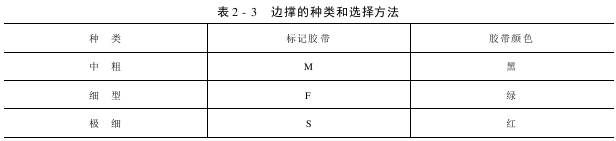 根据面料的不同,需要选择中粗目、细目、极细目边撑(表2-3)。