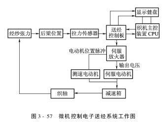 一般由上述的计算机及伺服驱动器组成。计算机的显示屏可以显示送经系统的实际张力数据及张力设定值等,并可用键盘进行相应的数据设定及修正。
