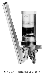 由油脂润滑泵和油脂分配器及油管组成。此种加油方式加油点较集中,比较方便。图3-60为油脂润滑泵示意图。
