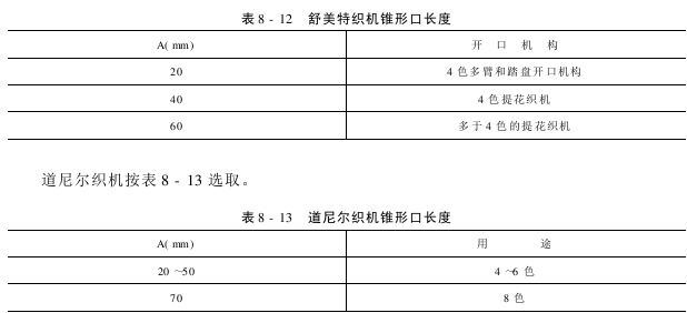 舒美特织机按表8-12选取。